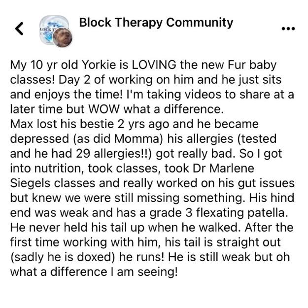 The technique you just learned is one of the foundational movements from the full Block Therapy Pet Program.