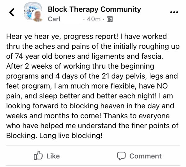 - Whether you are a seasoned Blocker or new to Block Therapy, you are welcome to join!